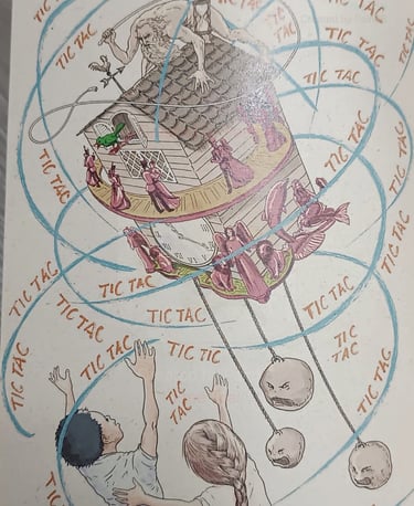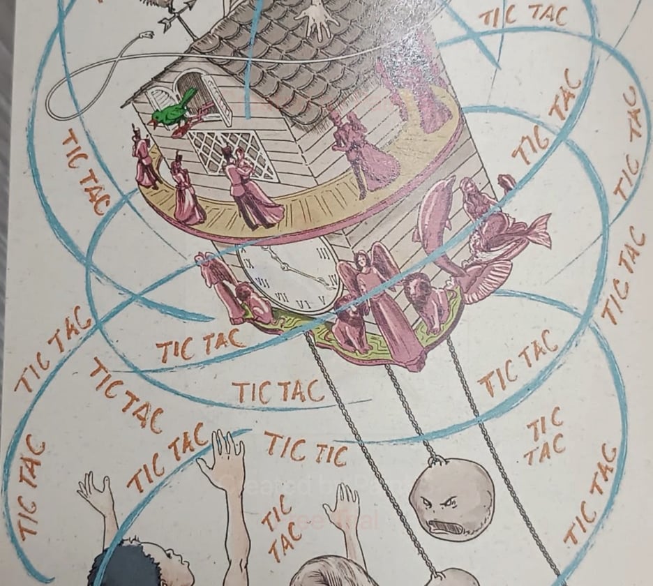 Lo que no sabían estos espectadores, era que tanto el pajarillo como los artistas, estaban hastiados de su labor: a cada rato las parejas reacomodaban sus trajes para salir a escena y el pajarillo tenía que afinar su voz para señalar las medias horas y las horas en punto sin cambiar la melodía de su canción. El tic-tac del reloj no los dejaba descansar ni tomarse un tiempo libre, mucho menos dormir; había que ensayar.