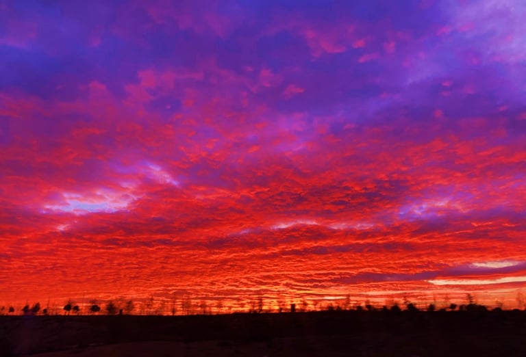 En ocasiones, las nubes se ponen de acuerdo con el sol e irradian armonía confeccionada entre rojos, naranjas, rosas y violetas, que mágicamente colorean las nubes esponjadas, alargadas, aborregadas, o como sea, e invitan a un día multifacético, aunque después de apreciar el espectáculo solo te deje sus fulgores que perdurarán en tu interior, como empuje inconsciente.