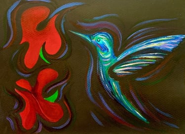 Cuando salió del lago, nuestra niña encontró que en la ventana estaba el colibrí, sorbiendo de las de terciopelo la sabia que le nutría y supo que era su abuelo que venía con ella a estar, convertido en humo a veces, en flor, en verde y en nubes, en sol y en agua de lluvia, y supo que no estaba sola, que estaba rodeada del todo que la abarca y acaricia haciéndola aún más ella, bella chiquilla alegre, bailadora y cantadora, que a veces se agüita y calla, con un callar que ahora es pensar y encontrarse de a deveras y encontrarse las maneras de la angustia despejar, de las ansias rebasar, del temor llenar de amor y a su ser dejar estar y a su ser decir YO SOY.